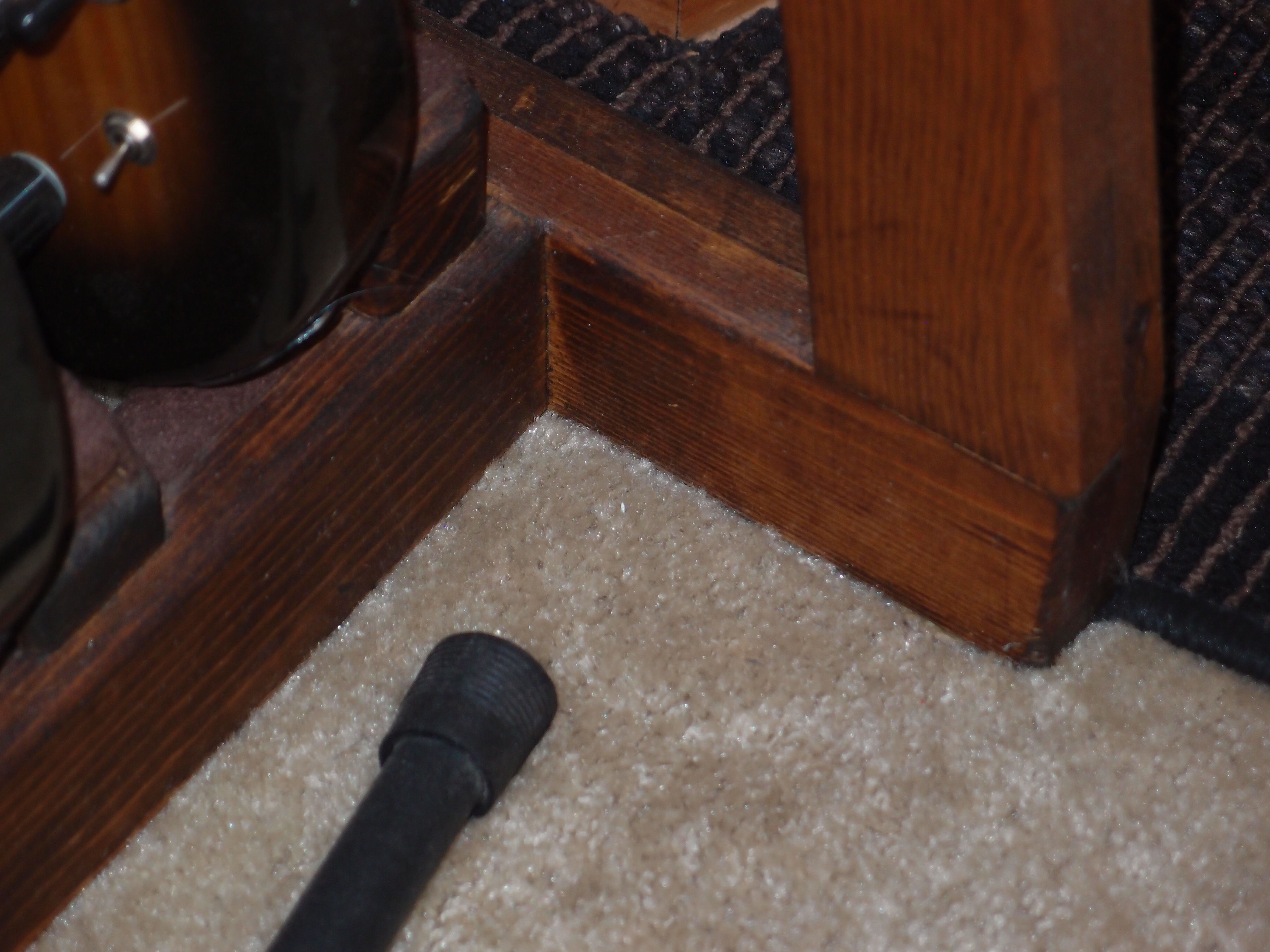 A sharp eye might also notice where I used my finish nailer to tack things. You don't need one, but if you have one, it can be useful. The nail heads fill up with stain and more or less disappear. If you have power tools, go ahead and use them!